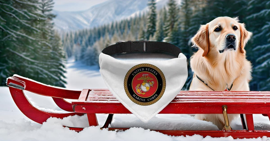- Marine Corps Pet Bandana Collar is available in 3 sizes. Please choose the appropriate size according to your pet's size. - 6.94" x 4.125" x 4.125", 12" x 7.3" x 7.3", and 14.5" x 9" x 9"