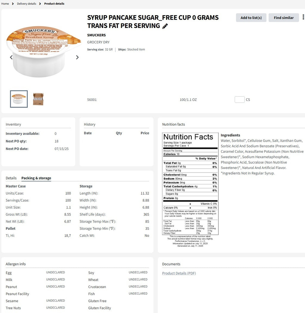 SYRUP PANCAKE SUGAR_FREE CUP 0 GRAMS TRANS FAT PER SERVING